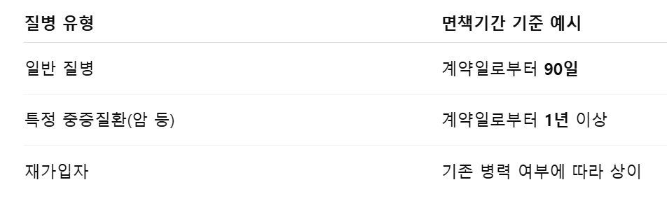 ☑️ 예시: 실비보험 가입 후 2개월 만에 위염으로 입원했다면, 일반 질병 면책기간 90일이 지나지 않았다면 보험금 지급이 거절될 수 있습니다.