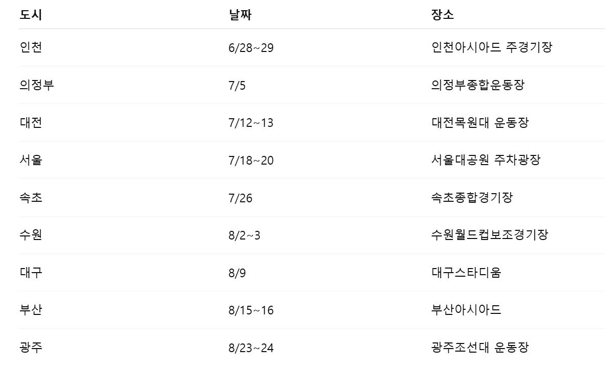 1. 공연 일정 & 장소 (전국 9개 도시, 16회 공연)