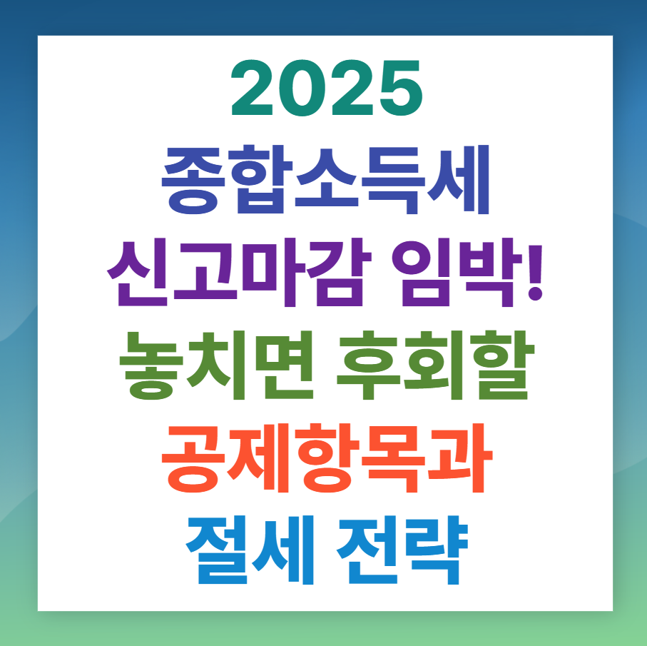 종합소득세신고마감 임박! 놓치면 후회할 공제항목과 절세 전략 총정리