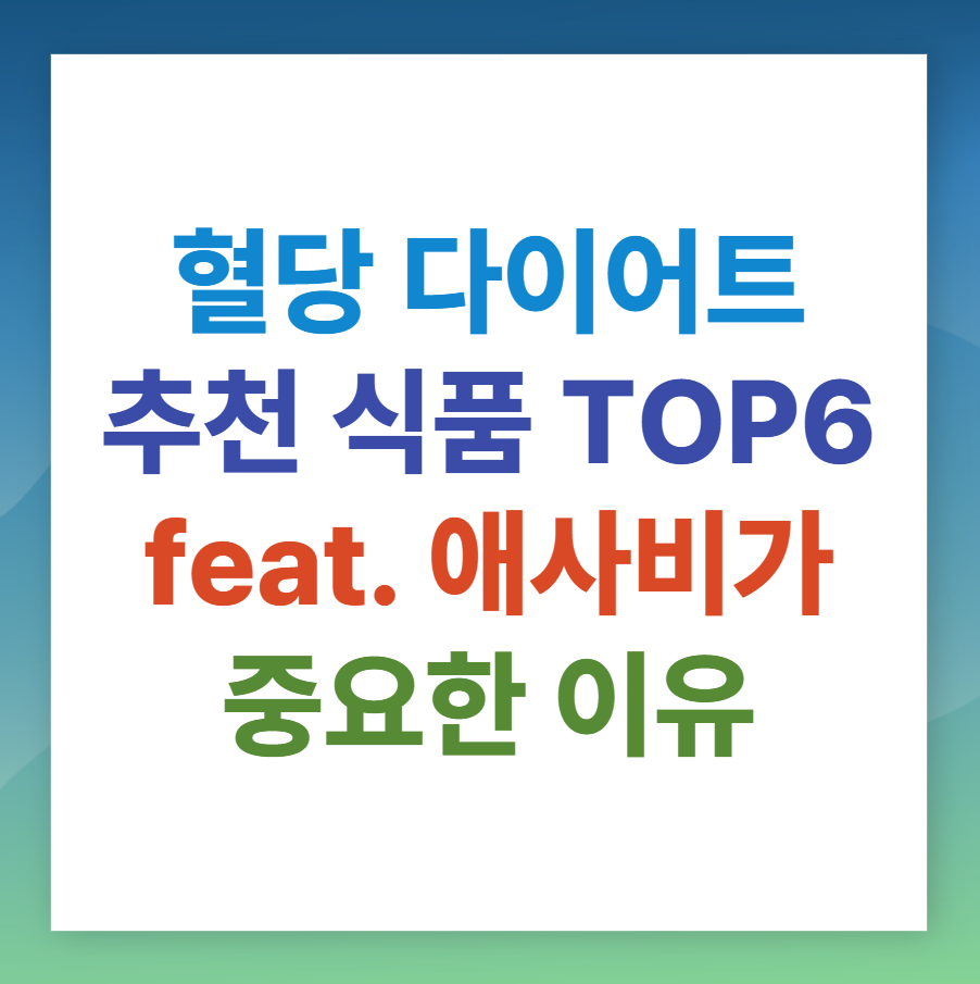 혈당 다이어트 식품 TOP6 (feat.애사비가 중요한 이유)