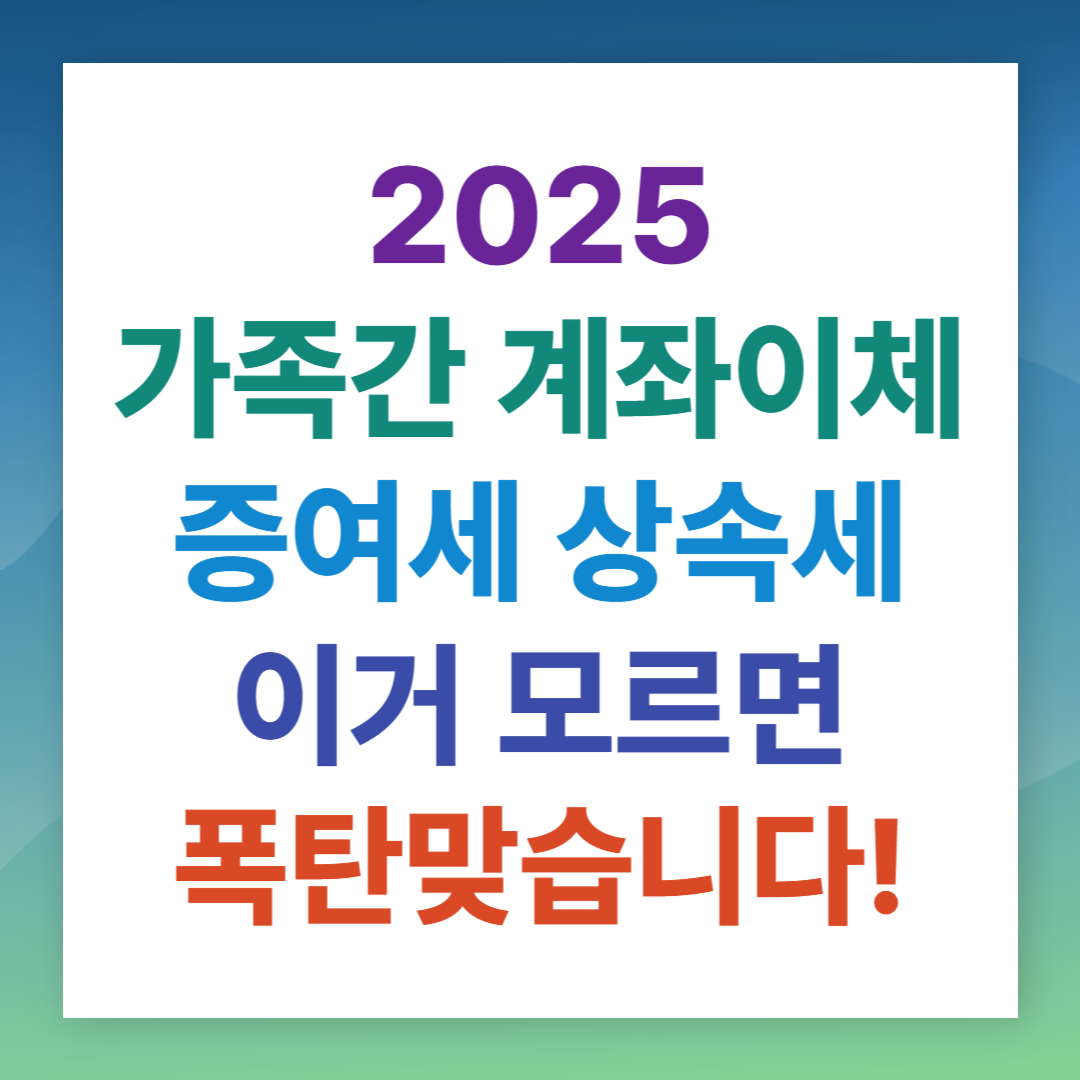 2025 가족간의 계좌이체 세금 증여세 상속세 이거 모르면 폭탄 맞습니다!