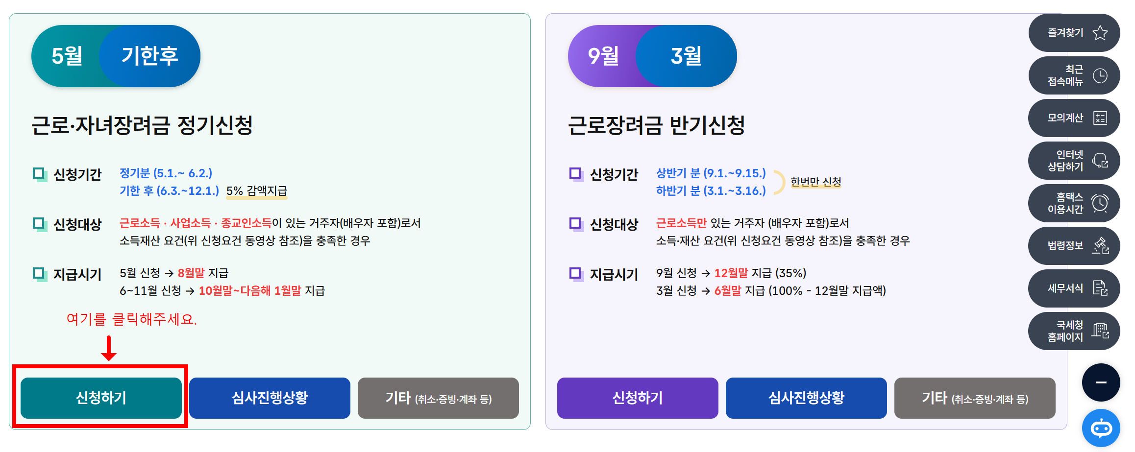 - 자녀장려금은 반기 신청 불가 (정기신청만 가능)