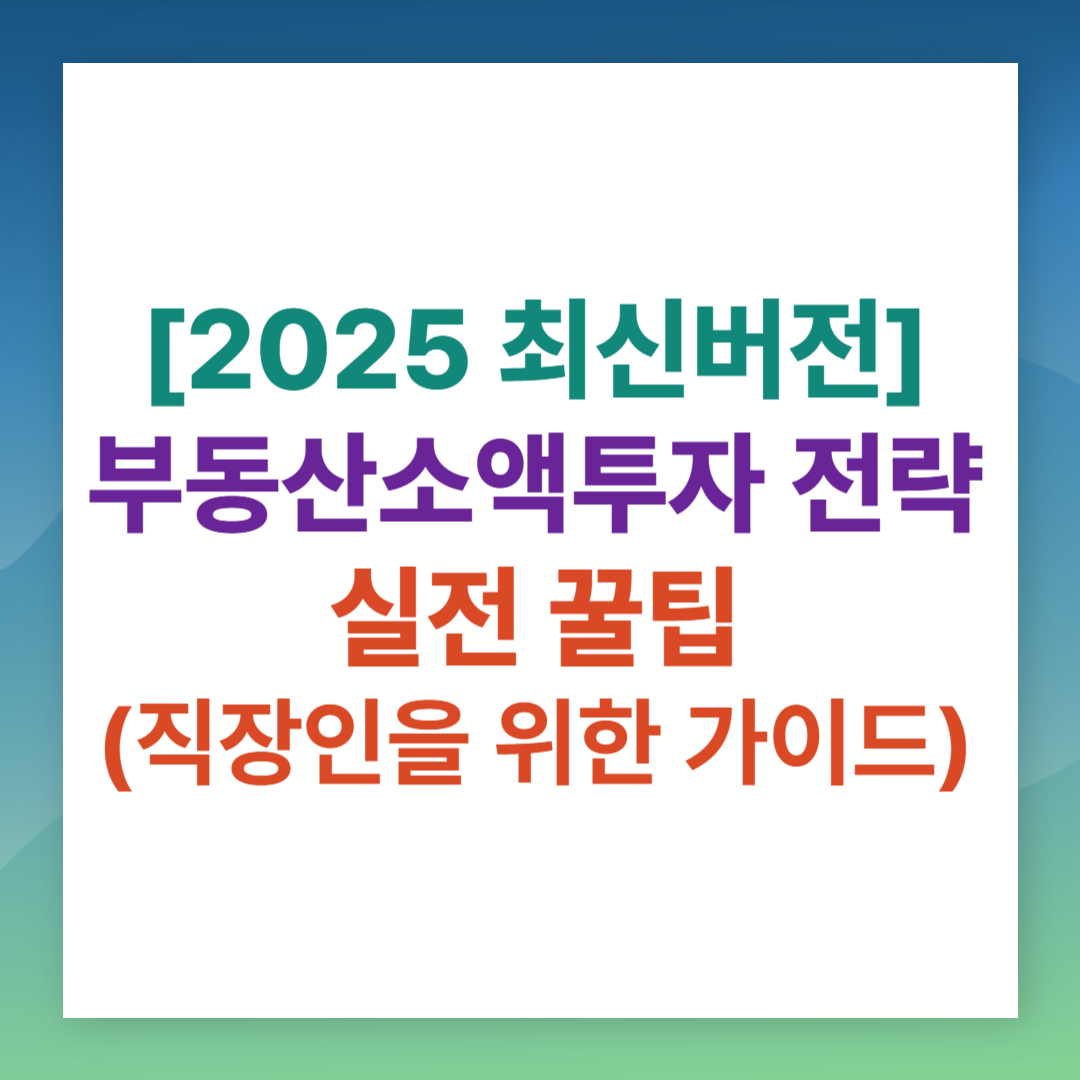 2025년 부동산 소액 투자는 사회초년생과 직장인에게 자산 형성의 기회를 제공합니다. 다음과 같은 팁을 참고하여 투자를 시작해보세요: