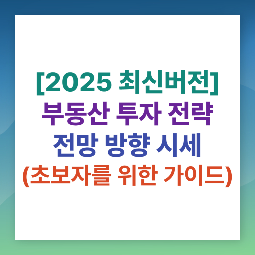 2025년 부동산 시장은 다양한 변수로 인해 복합적인 양상을 보일 것으로 예상됩니다. 초보 투자자는 시장 동향을 면밀히 분석하고, 신중한 접근을 통해 안정적인 수익을 추구하는 전략이 필요합니다. 전문가의 조언과 충분한 정보 수집을 통해 성공적인 부동산 투자를 실현하시기 바랍니다.