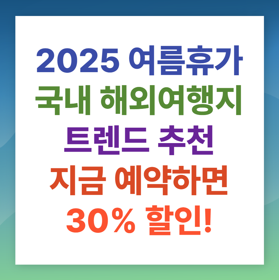 2025 여름휴가 국내 해외여행지 트렌 추천 (+지금 예약하면 최대 30% 할인!)