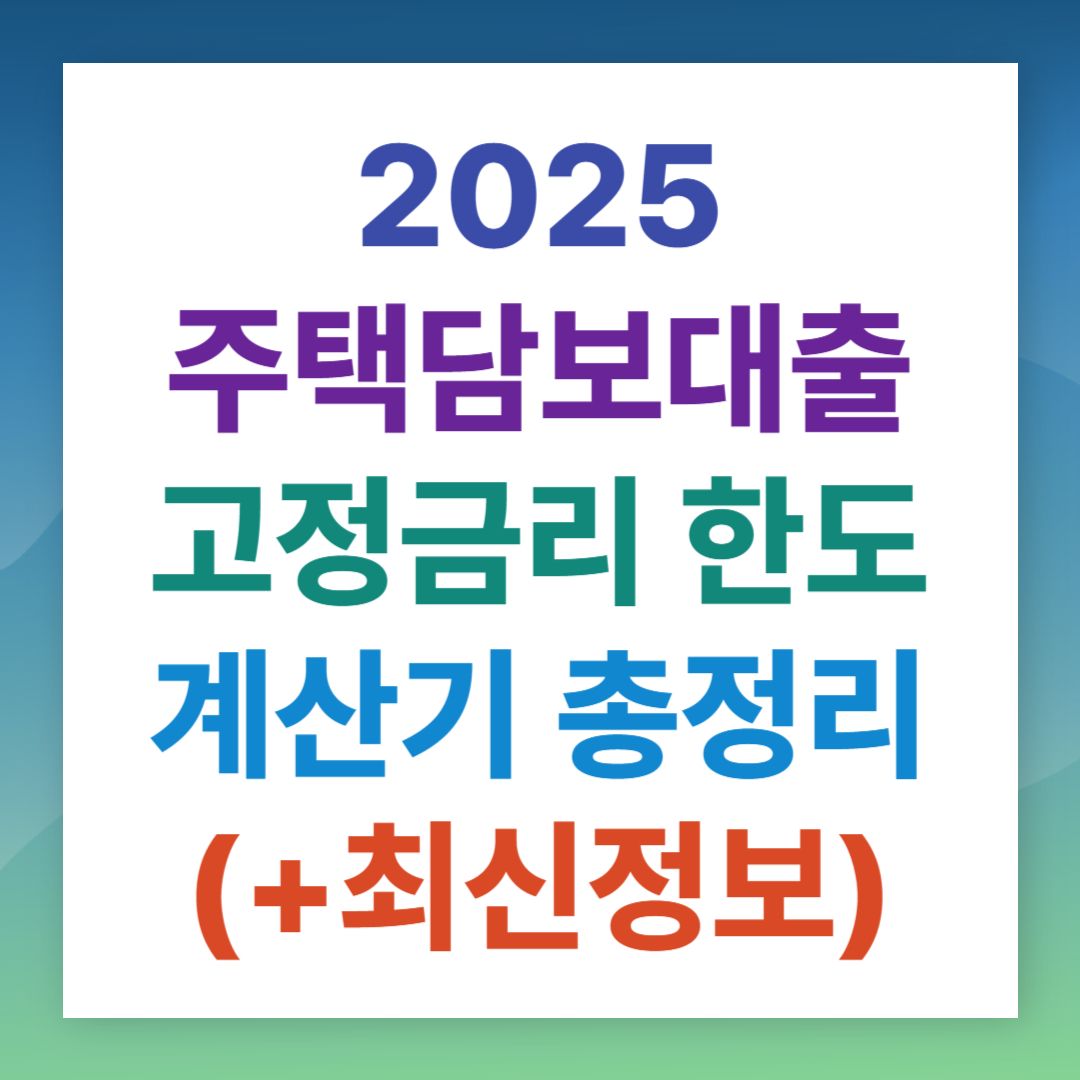 2025 주택담보 대출 고정금리·한도·금액 계산기 총정리 (+최신정보)