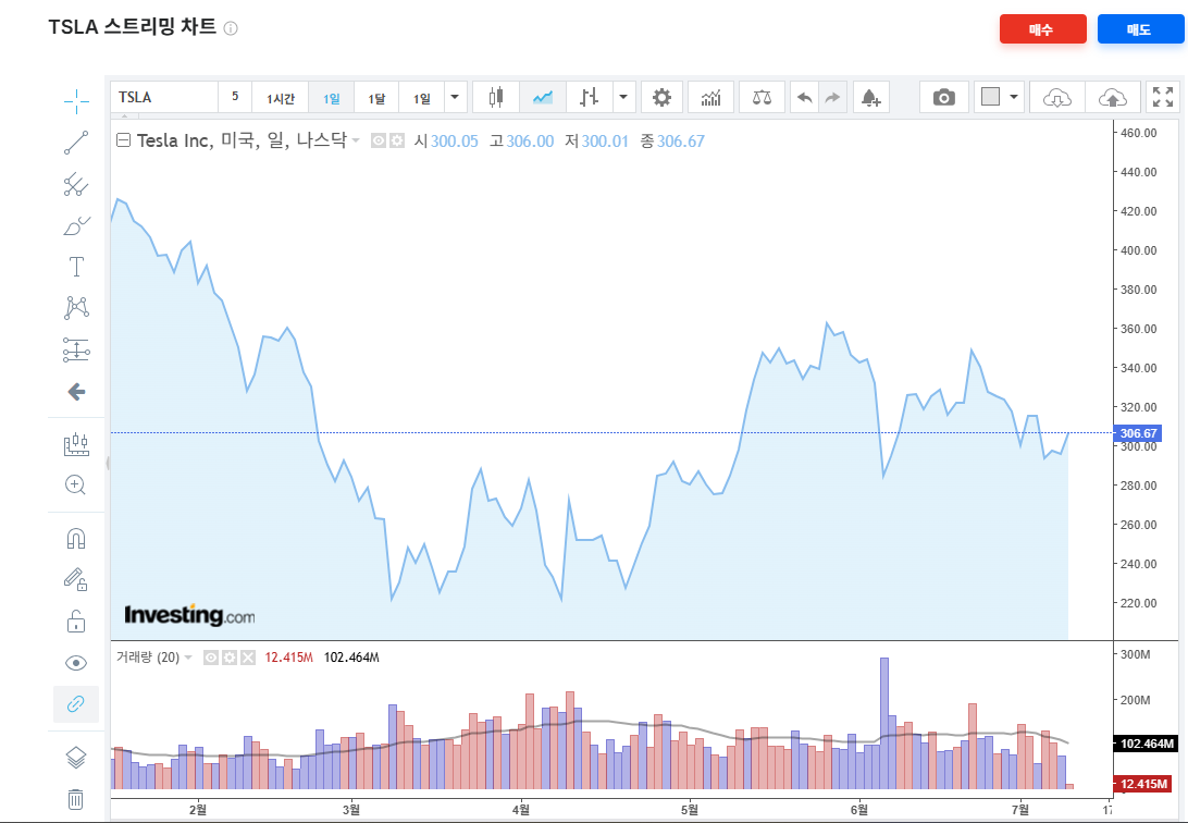 - 테슬라는 최근 장중 304달러까지 반등했지만,